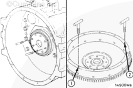 確定螺栓螺紋的圖案和規(guī)格,并在飛輪上的點(1)和點(2)安裝兩個 T 形手柄。