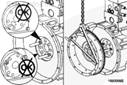 如果先前裝備,則應(yīng)在飛輪殼后側(cè)安裝新的凸輪軸軸頸孔矩形密封圈。涂抹少量密封膠(零件號 3164067),將密封圈固定入位,直至安裝飛輪殼。