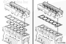 確認(rèn) ISX15 CM2250 發(fā)動機的正確密封墊零件號。安裝的密封墊不正確會導(dǎo)致嚴(yán)重的發(fā)動機損壞。