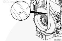 使用康明斯ISX15 CM2250發(fā)動機(jī)壓縮機(jī)驅(qū)動裝置或盤車裝置沿發(fā)動機(jī)旋轉(zhuǎn)方向順時針(從發(fā)動機(jī)前方看)盤動發(fā)動機(jī)。將減振器上的 A 標(biāo)記與齒輪室蓋上的指示箭頭對齊。