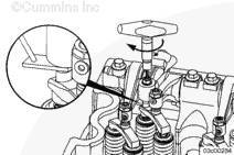 當(dāng)標(biāo)記對準(zhǔn)康明斯ISX15 CM2250發(fā)動機(jī)齒輪室蓋上的指示箭頭并且兩個氣門關(guān)閉時,松開進(jìn)氣和排氣門調(diào)節(jié)螺釘上的鎖緊螺母。將調(diào)節(jié)螺釘旋松一到兩圈。
