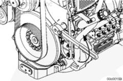 使用壓縮機(jī)驅(qū)動裝置或盤車裝置沿發(fā)動機(jī)旋轉(zhuǎn)方向順時針(從發(fā)動機(jī)前方看)盤動發(fā)動機(jī)。將減振器上的 A 標(biāo)記與齒輪室蓋上的指示箭頭對齊。