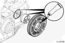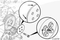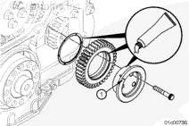 注: 此時氣門凸輪軸齒輪仍是松馳安裝,以便將可調(diào)整惰輪正確定位。不要座入齒輪。