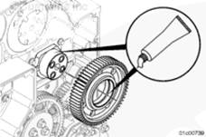 必須在涂抹 Loctite™ 后 15 分鐘內(nèi)完成凸輪軸齒輪固定螺釘擰緊過程。否則發(fā)動機可能會嚴重損壞。