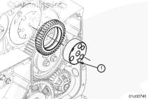 安裝康明斯ISX15 CM2250發(fā)動機止推軸承、軸和燃油泵惰輪。安裝軸時,必須使對齊標記 (1)(壓印在齒輪座圈上)朝向下剪式惰輪中間。