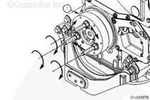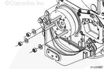 在將康明斯ISX15 CM2250發(fā)動機蓋固定到位的同時,用三個 M8 螺釘,一個六角螺母和兩個 M12 螺釘安裝下齒輪室蓋并手動擰緊。