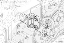 使用康明斯ISX15 CM2250發(fā)動機提升設(shè)備將齒輪室蓋安裝到下部三個雙頭螺柱上。