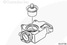 推壓康明斯ISX15 CM2250發(fā)動(dòng)機(jī)節(jié)溫器外緣,將康明斯ISX15 CM2250發(fā)動(dòng)機(jī)節(jié)溫器裝入節(jié)溫器殼體蓋中。