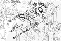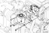 將渦輪增壓器供油管安裝到渦輪增壓器軸承殼體陽性接頭 (1) 上。供油軟管必須直接朝下,以便正確連接到機(jī)油濾清器座 (2) 上的供油管接頭上。