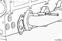 用兩根康明斯ISX15 CM2250發(fā)動(dòng)機(jī)節(jié)溫器殼體蓋螺釘將節(jié)溫器殼體對(duì)正。