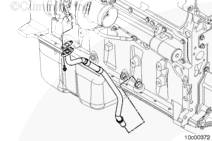 將康明斯ISX15 CM2250發(fā)動(dòng)機(jī)渦輪增壓器供油軟管安裝到機(jī)油濾清器座上的供油管接頭上。