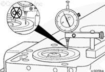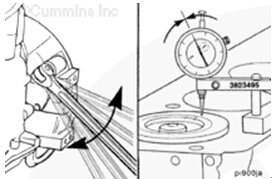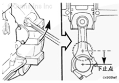 旋轉(zhuǎn)曲軸至上止點。順時針和逆時針旋轉(zhuǎn)曲軸,查找千分表最大讀數(shù)。記錄測量結(jié)果。