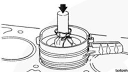 如果使用帶式活塞環(huán)壓縮器,確保帶的內(nèi)側(cè)沒有掛在活塞環(huán)的缺口上并折斷活塞環(huán)。