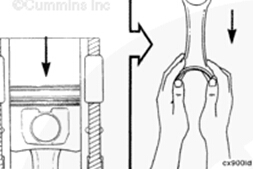 安裝康明斯B3.9、B4.5、B4.5 RGT 和 B5.9 發(fā)動機連桿蓋時檢查能否轉(zhuǎn)動自如。如果曲軸不能轉(zhuǎn)動自如,檢查連桿的安裝和軸承尺寸