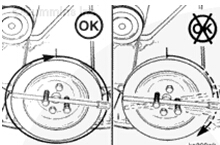 連桿 (1) 的長端必須在發(fā)動機的排氣側(cè)。如果不是,核實活塞正確安裝在連桿上。