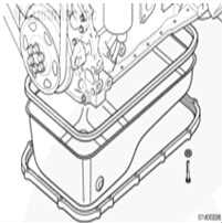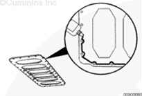 在新油底殼密封墊的兩側(cè)涂上一圈 2-mm [0.063-in] 的 RTV,零件號(hào) 3164067。